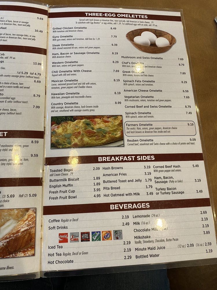 The works ham, onion, green peppers, American cheese and hash browns, or American fries inside and out.