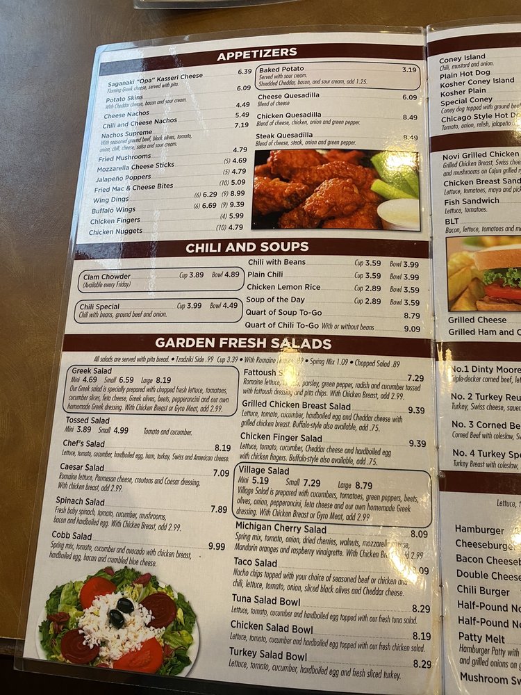 Novi Coney Island is a restaurant that offers a wide range of hot dogs, diner-style dishes, and classic American fare. Located in Novi, Michigan, this establishment provides a variety of amenities such as delivery, takeout, reservations, and wheelchair accessibility. The menu features appetizers like the Saganaki Opa Kasseri Cheese and Potato Skins, as well as hearty chili and soups options. The Garden Fresh Salads section offers a delicious Small Greek Salad and Chef's Salad. With a range of options suitable for breakfast, brunch, lunch, dinner, and dessert, Novi Coney Island is a versatile dining destination. Whether you're looking for a quick bite or a sit-down meal, this restaurant has something for everyone.